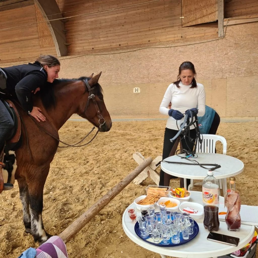 Aber nach getaner Arbeit gab es dann für Reiter und Pferd eine Verschnaufpause mit Essen und Trinken.