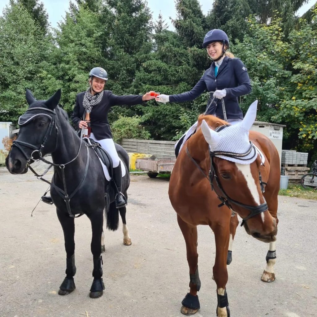Station zwei war nun die Reitanlage Doser. Hier kam es auf die Sportlichkeit an – zumindest von einem der beiden Paare. Einer der Paare durfte einen kleinen Parcour mit dem Pferd springen, der andere musste dies ohne seinen vierbeinigen Partner machen.